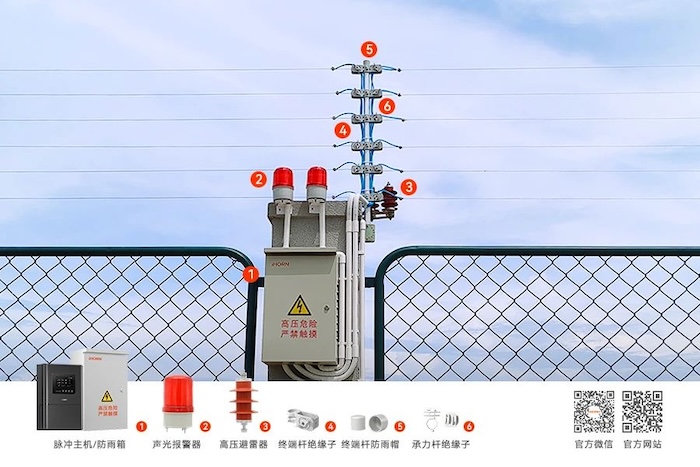 如遇強(qiáng)行入侵,電子圍欄將給予安全能量范圍內(nèi)的脈沖高壓打擊,警告非法入侵者,動(dòng)搖其攀越圍欄的能力與動(dòng)機(jī)。同時(shí),系統(tǒng)現(xiàn)場(chǎng)發(fā)出高分貝聲鳴報(bào)警,并與其它安防系統(tǒng)聯(lián)動(dòng)(如報(bào)警主機(jī)、監(jiān)控系統(tǒng)等),從而達(dá)到安全阻擋目的。